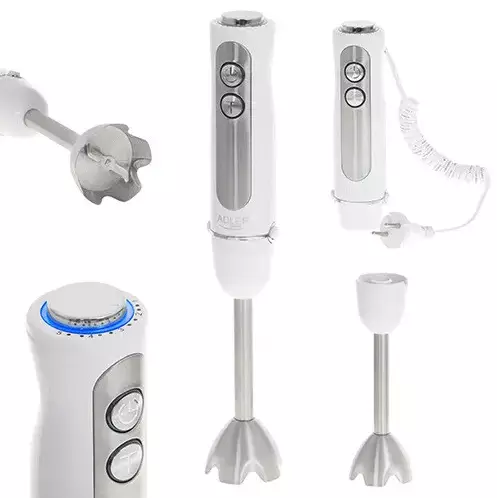 Блендер занурювальний Adler AD-4625 - ваш надійний помічник. Блендер з потужністю 850 Вт швидко подолає подрібнення або перемішування продуктів. Простий спосіб швидко досягти хороших результатів лише одним натисканням кнопки. М'яка ручка, доступна і велика кнопка забезпечують оптимальний комфорт і контроль блендера під час роботи.