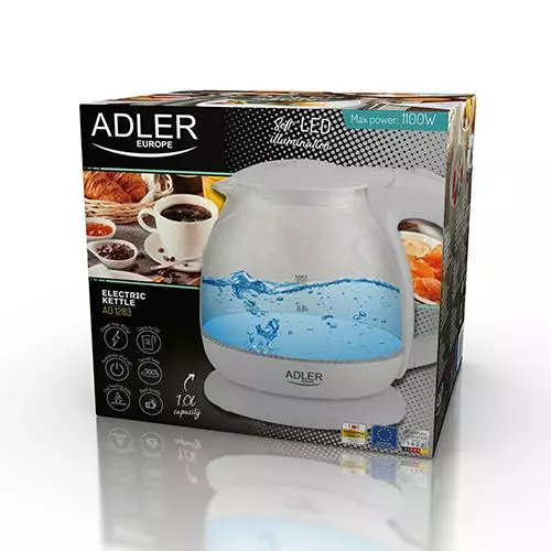Маленький електричний чайник традиційної форми глечика в сучасному виконанні. Дозволяє ефективно кип'ятити воду для чаю для 3-4 осіб завдяки потужності 1100 Вт і об'ємом 1 л Чайник автоматично вимикається після закипання води. Чайник підсвічується світлодіодними діодами. він оснащений блокуванням, що запобігає вмиканню чайника, що економить електроенергію та забезпечує безпеку користувача. Для зручності він оснащений поворотною основою, плоским дном і нагрівачем з нержавіючої сталі. Це дозволяє закип’ятити 1,0 л води за раз.