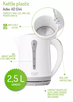 Чайник пластиковый 2.5 л Adler AD 1244