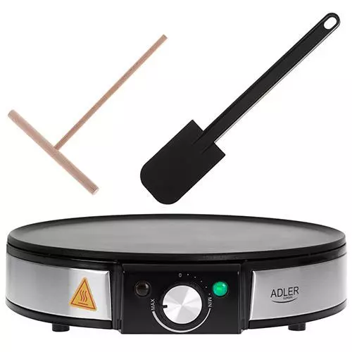 Млинниця ADLER AD 3058 - пристрій, який буде використовуватися в більшості будинків. Ви можете швидко і зручно приготувати закуски на сніданок і полуденок, а також основну страву на вечерю. Діаметр нагрівальної плити приладу 30 см. Антипригарне покриття нагрівальної плити, форма і високий бортик, що запобігає розливанню тіста, полегшать смажити млинці, а також коржі, оладки та деруни. Пристрій дозволяє плавно регулювати температуру, а дві контрольні лампи сигналізують про готовність обладнання до роботи. У набір також входять аксесуари для намазування тіста і перевертання млинців.