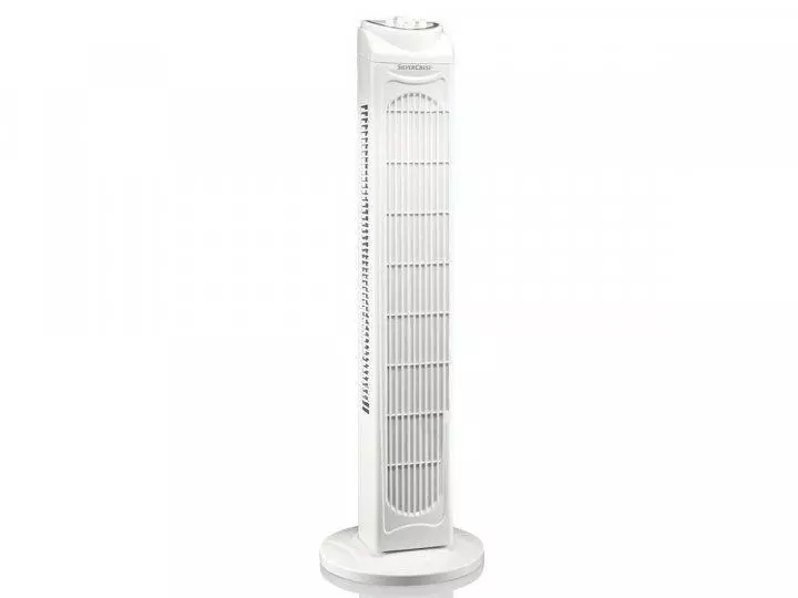 SILVERCREST STV 45 D3 колонний вентилятор 3 рівнями регулювання вентилятора можливе коливання на 90 градусів Безступінчастий автоматичний таймер на 120 хвилин Ергономічний пристрій керування Стабільна стійка на широкій ніжці 50/60 Гц матеріал : ABS Основа: діаметр близько 24 см Висота близько 76 см (включаючи ніжку) Довжина кабелю: близько 180 см вага: близько 2,466 кг