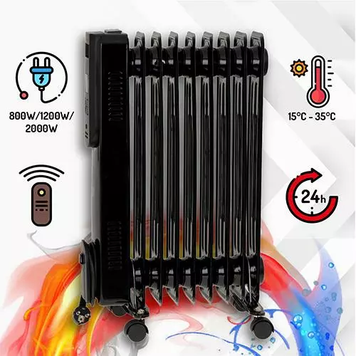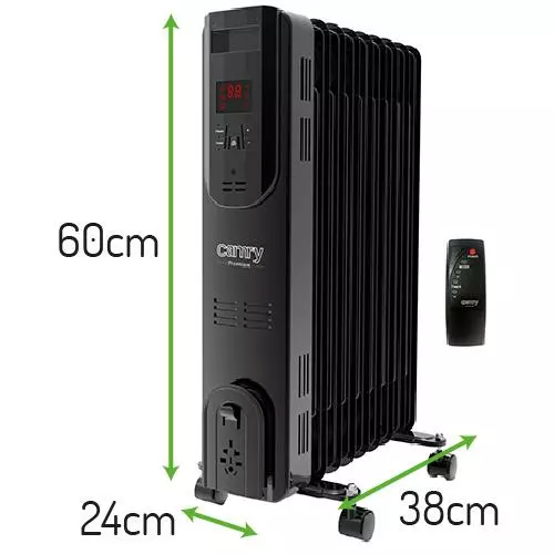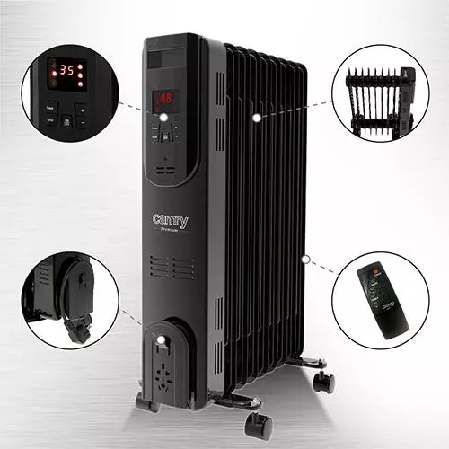 Эффективный масляный нагреватель с дистанционным управлением и легко читаемым светодиодным дисплеем. Он позволяет обогреть помещение при отсутствии или недостаточно эффективных радиаторах. Незаменим при выходе из строя отопительной системы. Радиатор позволяет регулировать температуру в диапазоне 15°С - 35°, работает на 3-х уровнях мощности. Нагреватель автоматически регулирует потребляемую мощность в соответствии с установленной температурой нагрева. Для безопасного использования устройство оснащено защитой от перегрева. Радиатор выполнен в элегантной линии, поэтому его можно разместить в месте приема гостей дома или клиентов в офисе. Устройство имеет пульт дистанционного управления. Версия CR 7810 имеет 9 ребер нагрева и мощность 2000 Вт.