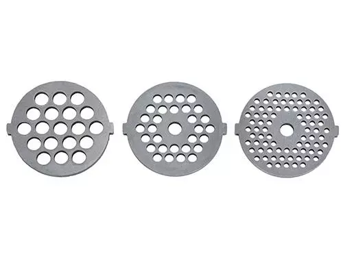 - Ситечко 7 мм - товста сітка для подрібнення м'яса з чіткою структурою. Сіто призначене для виробництва ковбас і потрухів.