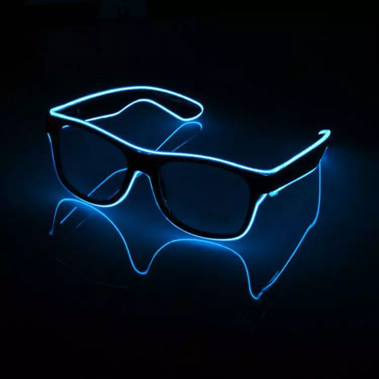 Данные очки оснащены светодиодной неоновой полоской и маленьким удобным блоком питания для двух обычных батареек AA ( пальчиковые 1,5V ) с переключателем режимов свечения. Свечение происходит в трех режимах: обычный статический, вспышка, flash.