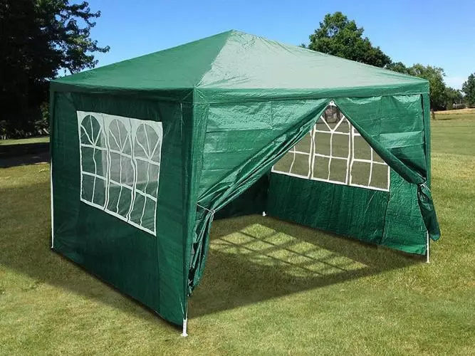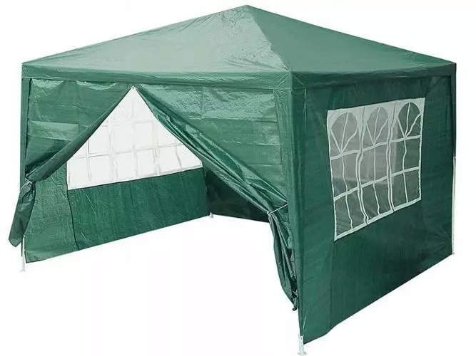 Садовый павильон - ручная палатка защищает от чрезмерного солнца и умеренного дождя. Чрезвычайно простой и быстрый в установке. Павильон идеально подходит для вечеринок в саду. Также отлично подходит в качестве коммерческой палатки. Комплекс занимает мало места. Очень короткое время сборки. Металлические трубки окрашены порошковой краской в белый цвет (устойчивы к ржавчине и коррозии). Все необходимые для сборки элементы включены (фитинги, трубы, канаты, сельдь и т. Д.).