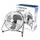 Напольный вентилятор выполнен в оригинальном дизайне, металлические лопасти спрятаны за металлической сеточной чашей для Вашей безопасности. Ее половинки размыкаются, что удобно при необходимости доступа к лопастям. Вентилятор закреплен на специальной изогнутой ножке, также металлической, что обеспечивает устойчивость. Не ней снизу прикреплены антискользящие накладки, что обеспечивает устойчивость на разных поверхностях. Вентилятор наклоняется, угол наклона составляет 120 °.